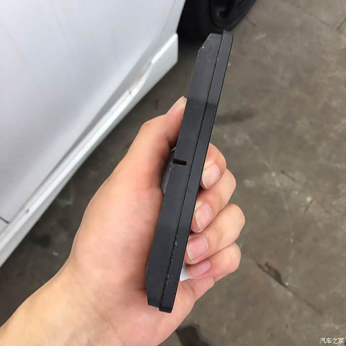 原厂后刹车片,已经烧这样了,像煤炭一样。