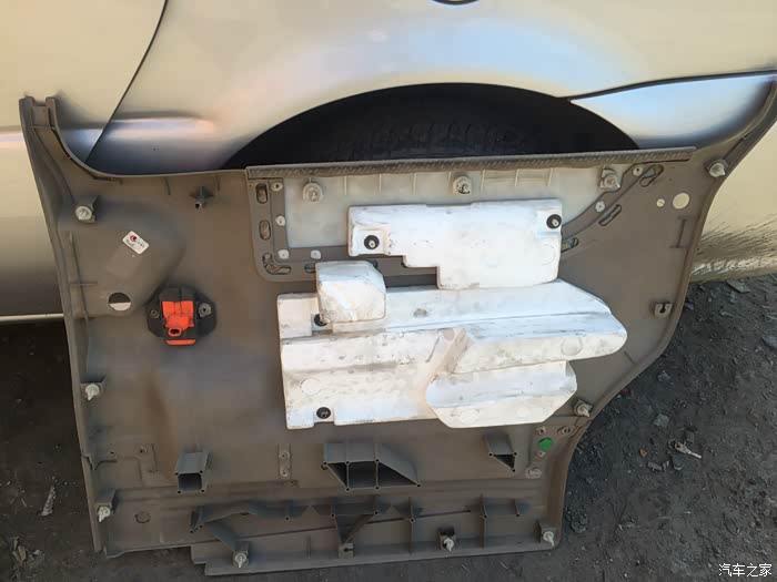 内饰板内侧还有一大块泡沫,里面的结构很是简单。