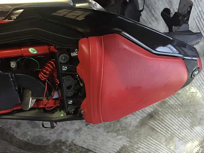内部枪钉打的也够吓人的,与山寨车没有区别...某些大品牌踏板,枪钉打的整齐划一,余料黏贴紧实。。。哎...