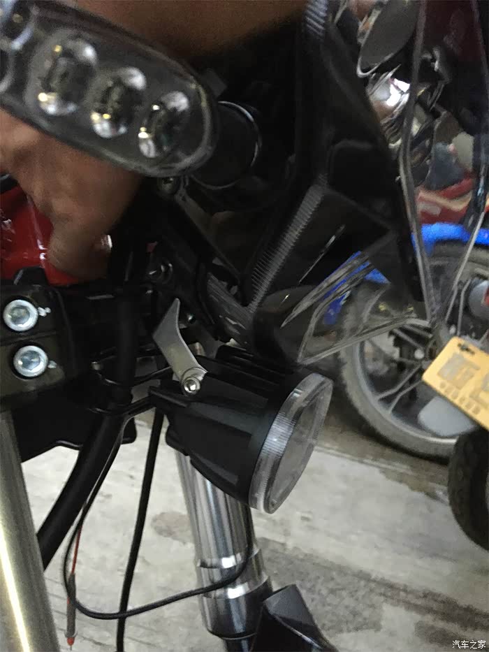 小龙的灯光确实不怎么样,虽然有灯光调节,单无论如何都调不到理想的位置,不是太近就是太远散光,远光就是一条线,太细,开起来真的很累!于是乎,开始加装夜行辅助灯,看了好多灯,最后选了一只两透镜的,铝合金的,样子不错。