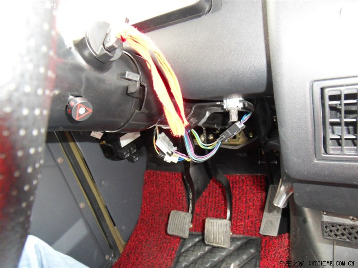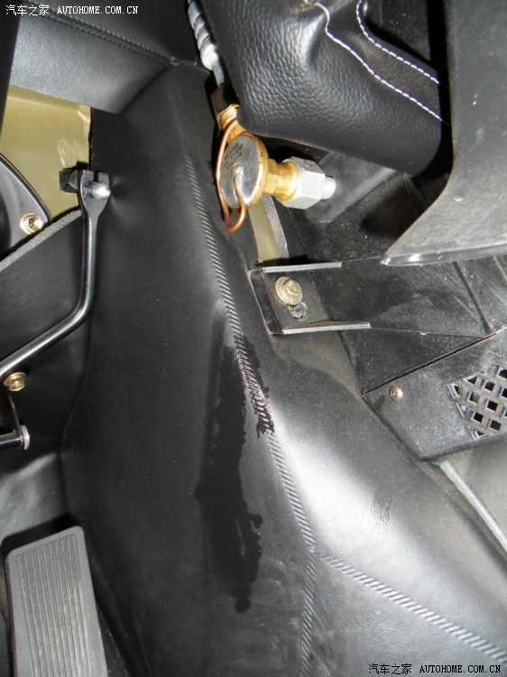 方向盘下方,各种存在...仔细看,瞧,那有根管子哭了。