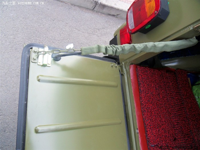 宽大的备胎。看下面的红布条,本来是在备胎上的,加了备胎罩后就系到了拖车钩上。