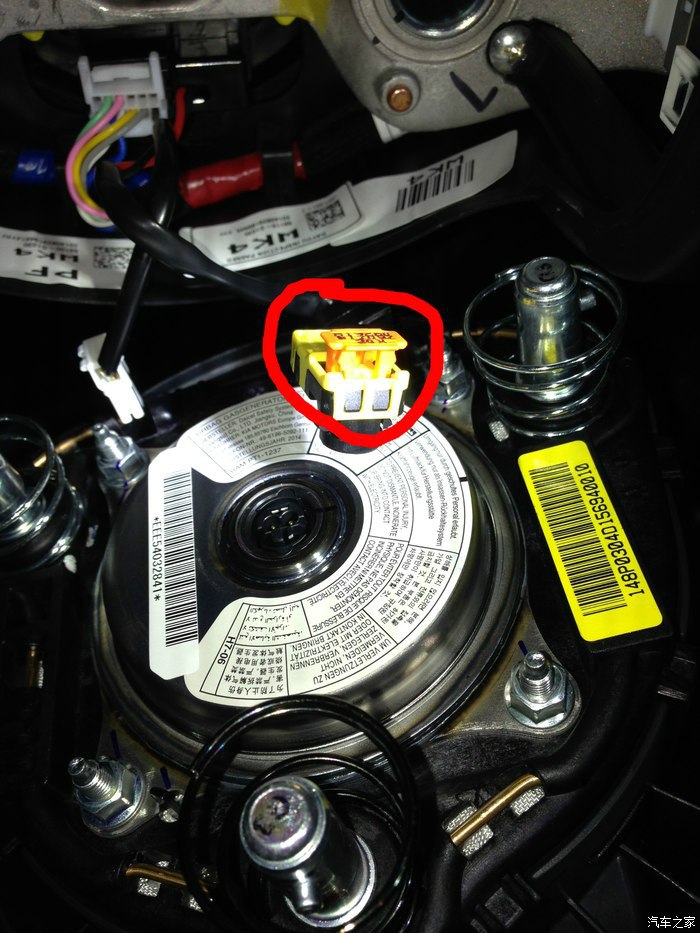 5.把拆下来的东西按照流程反向都装回去,把气囊线接上按回去,拧上方向盘的3个螺丝,更换完毕。