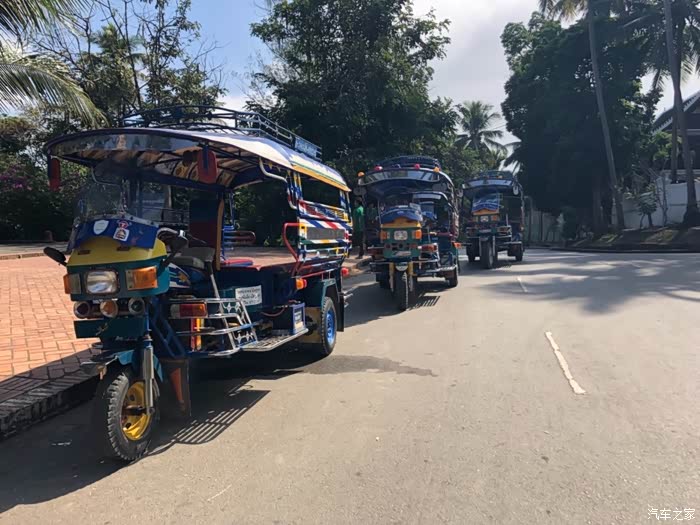 已是老挝的街头了,基本上代步车都是这种突突,打扮的还挺花枝招展,都是摩托车改造的