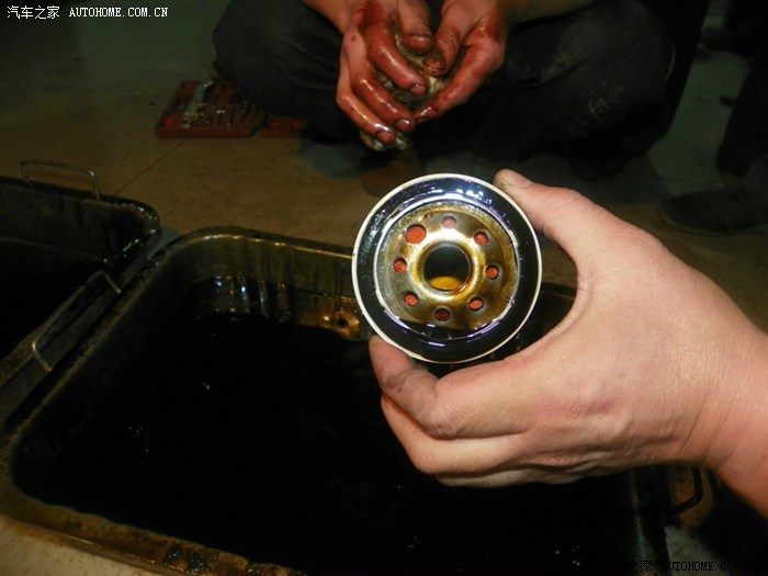 旧机油格上面必须打一个小孔,然后安装回去,用干净的压缩空气通过小孔加压,这样就可以最大限度的更换干净旧机油。