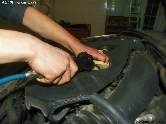 结合干净压缩空气吹机油盖5秒,机油尺5秒。
