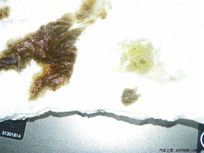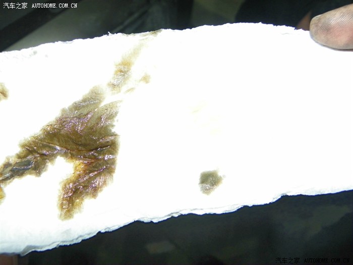 为什么用餐巾纸,因为它的发散性特别快,对比新机油痕迹可以方便大致判断旧机油状况。