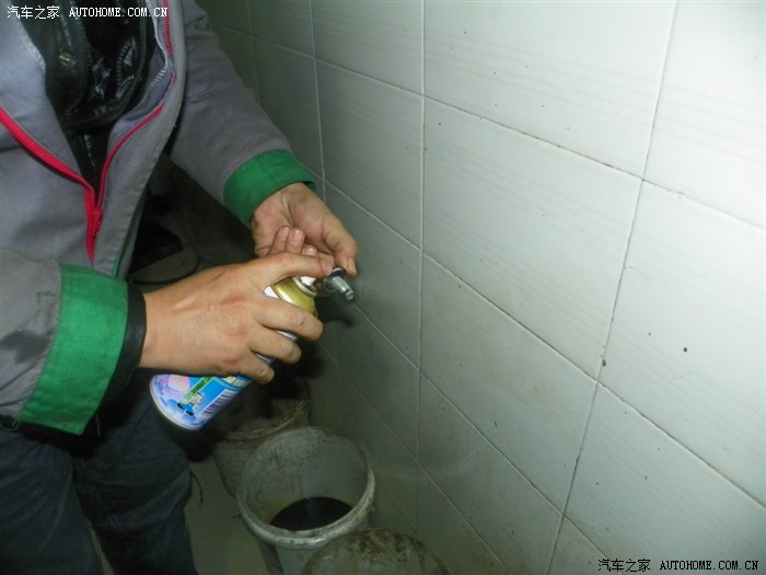 正在通过小孔吹旧机油出来。