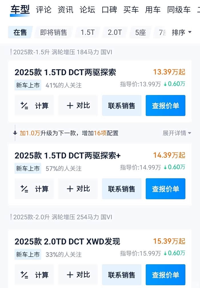 2025款起售价13.99万元,顶配18.49万元。购车政策亮点: