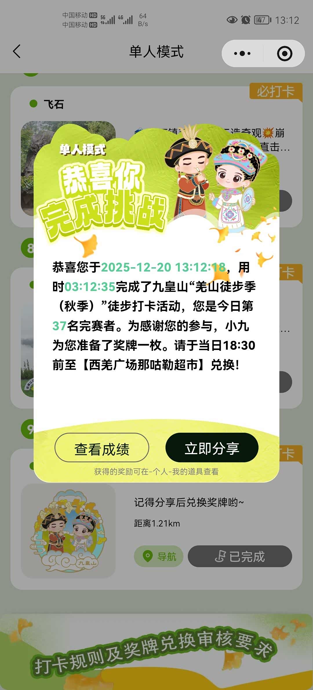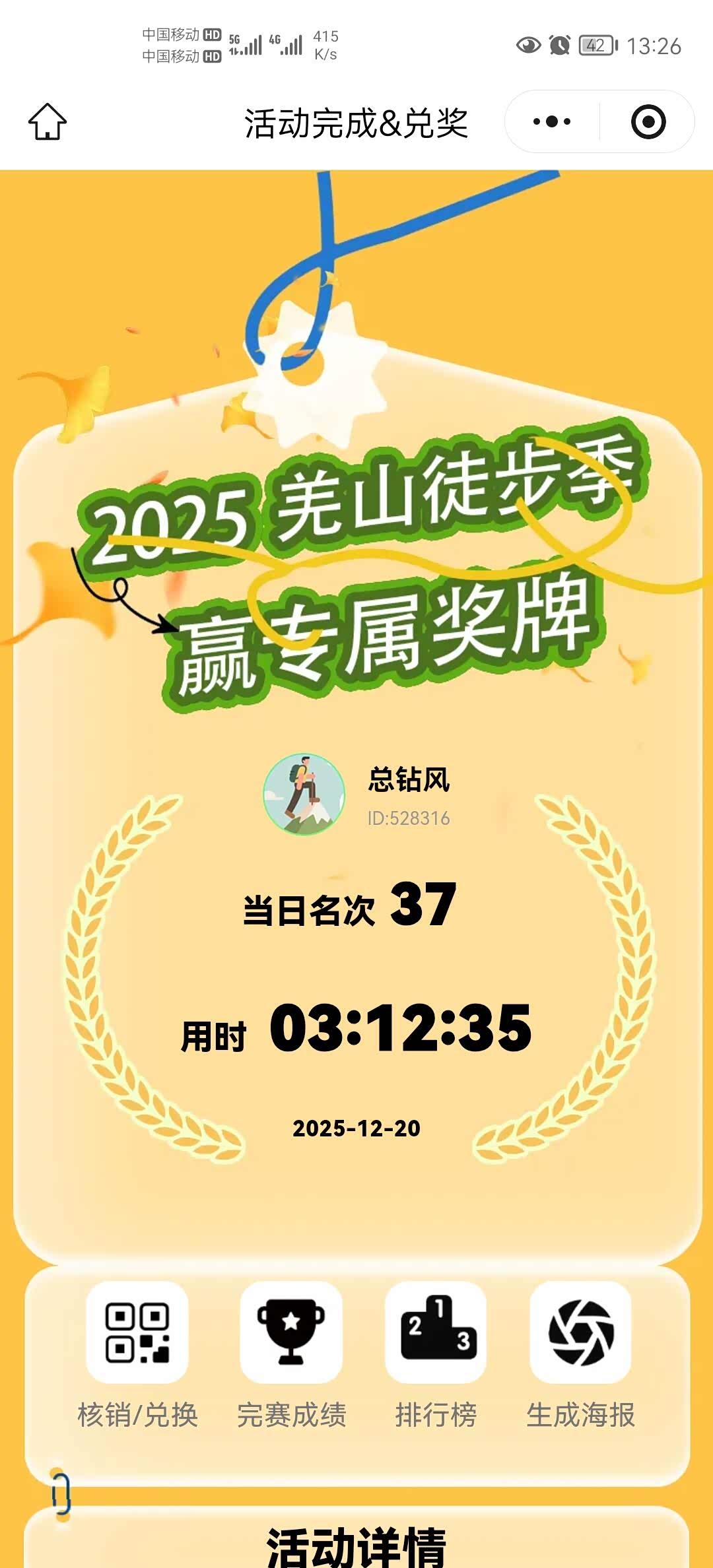 一路走走停停,歇了无数次,历时整整5个小时,终于爬到了终点,云中农场!那一刻真的想哭,双腿已经不听使唤了,感觉每走一步都在打颤。山顶的风景还行,没有想象中那么惊艳,老婆倒是兴致勃勃,拉着我拍了好多照片,还发了朋友圈。领完奖牌的时候,工作人员说可以抽奖,我本来没抱啥希望,随便抽了一张,结果居然中了足金贴!当时我和老婆都惊呆了,简直是欧气爆棚,这趟虐到腿软的徒步,瞬间觉得值了!