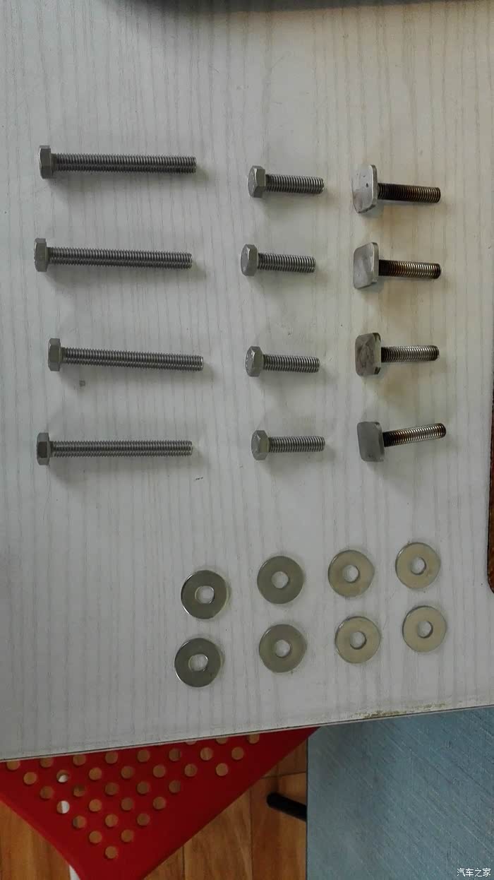 和淘宝客服联系后,技术人员建议改用T型螺栓安装(仿酷客的横杆有T型凹槽)。于是又顺丰增发了一套T型螺栓安装配件(实际安装没有用到最左侧的4颗长螺栓,和店家确认是备用的)。完美安装,非常牢固。另外,店家技术人员提醒国产仿品横杆采用的材质远不如正品,塑料件的老化时间一般为2-3年,建议平时多检查。看来用2年还得换一副正品横杆。