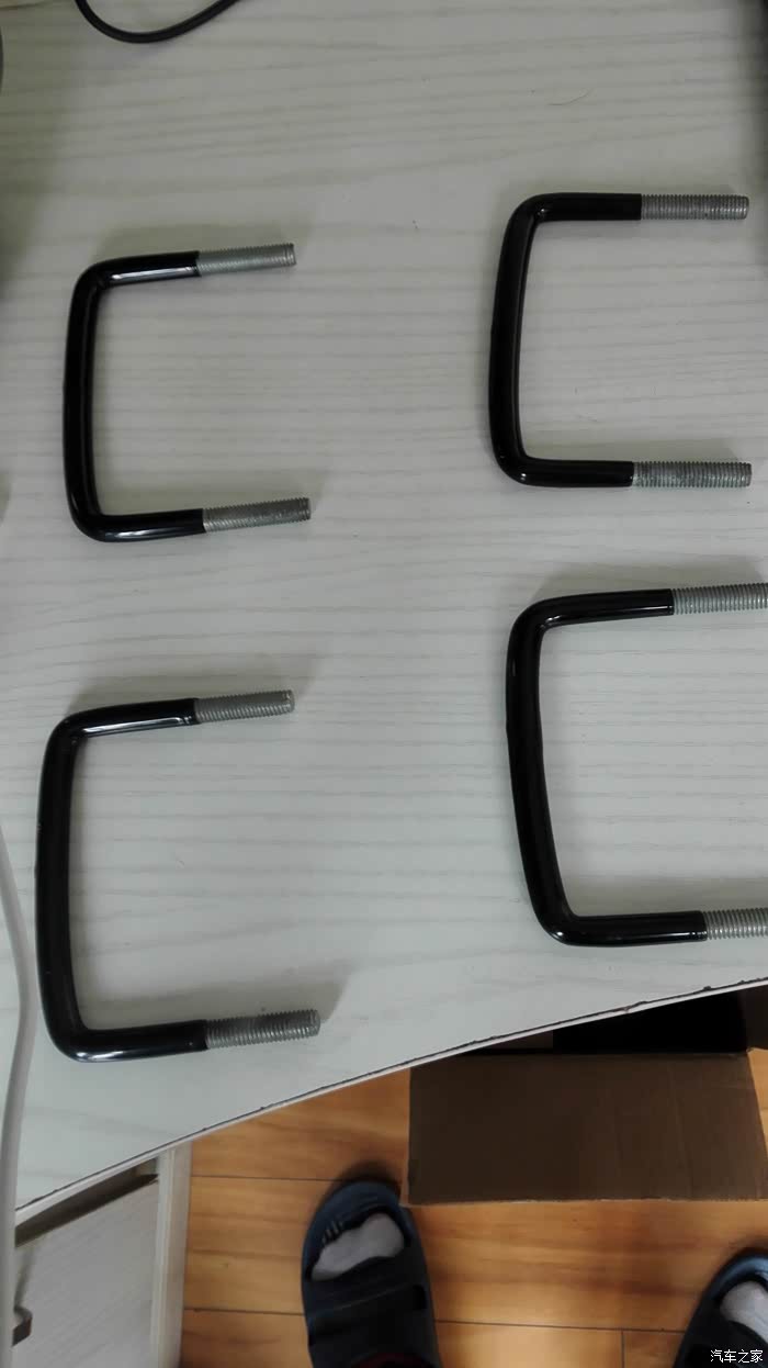 重点讲下安装时候遇到的问题。买的时候没有太注意安装尺寸,箱子原配U型螺栓安装,前后支持的最大安装间距是85cm。而马5的预留横杆螺栓孔的位置是固定的,装好横杆后,前后横杆的最外侧间距有90cm,所以用U型螺栓装不上。