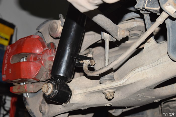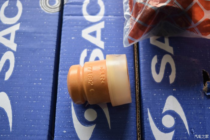 更换全新的缓冲胶和避震器,国产的宝马基本上都是和大众的一样普通的,进口的你可以看见上部采用了牛津材料