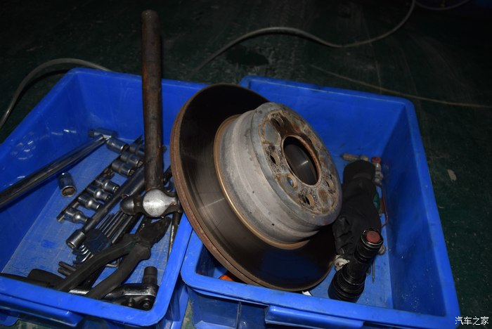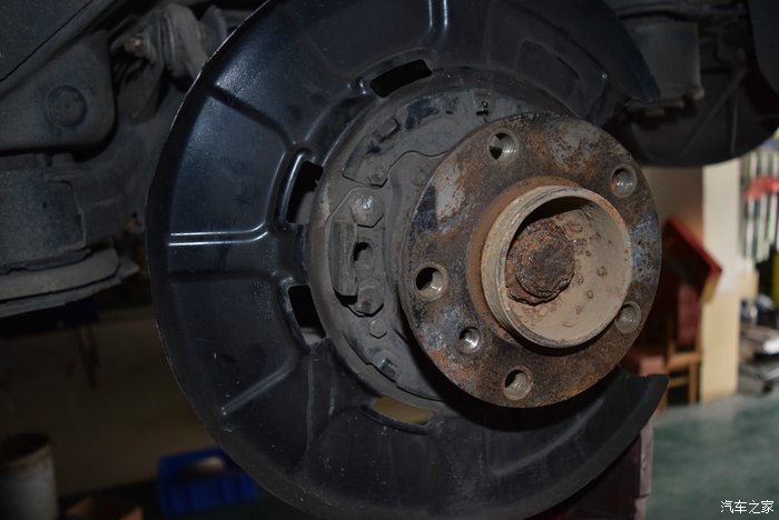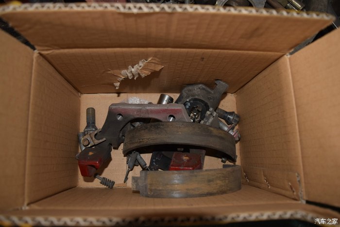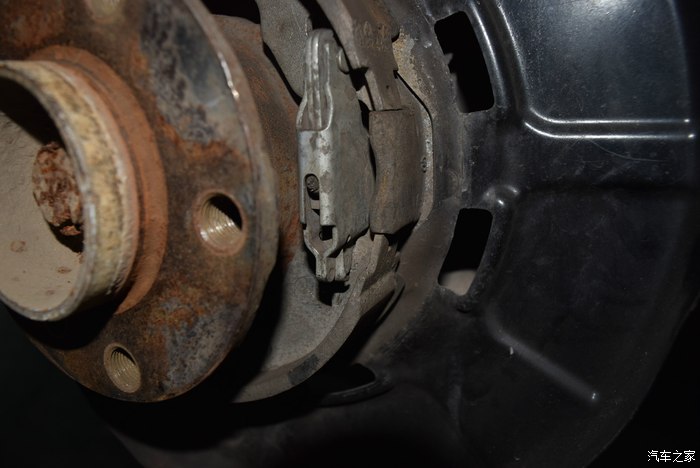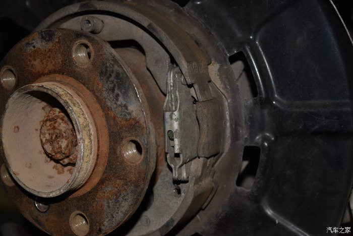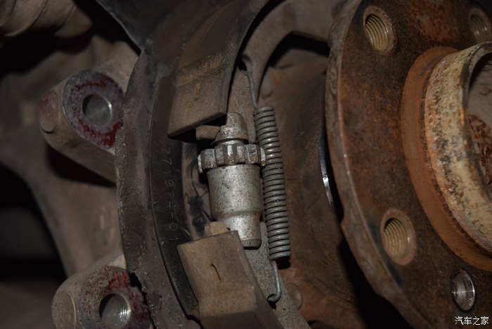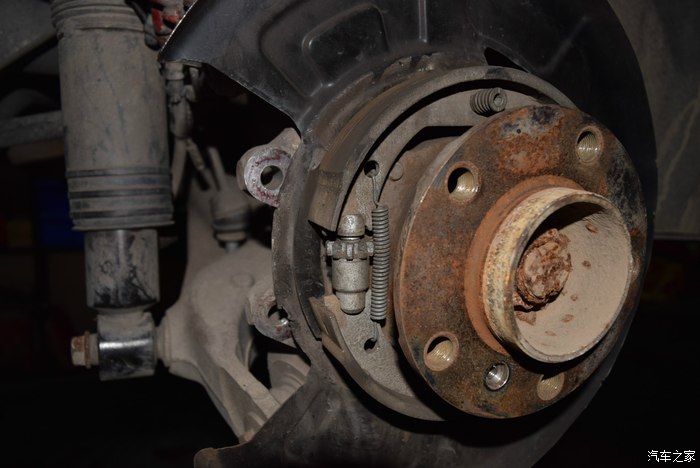 后轮的手刹系统和普通的面包车的后轮刹车系统基本一致,鼓式刹车,带齿轮的地方是调节蹄片间隙用的