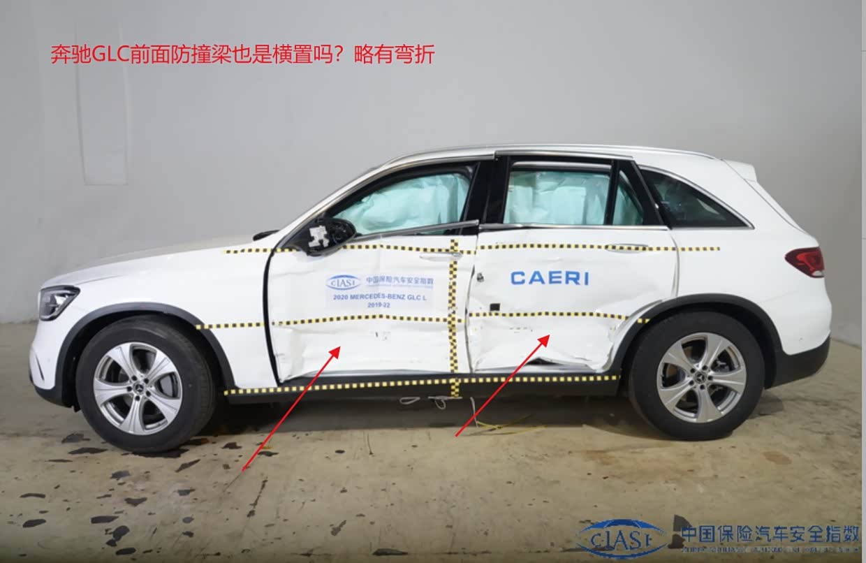 3、奔驰GLC前面防撞梁略弯,后面的没弯,B柱离座椅中心线距离23cm;