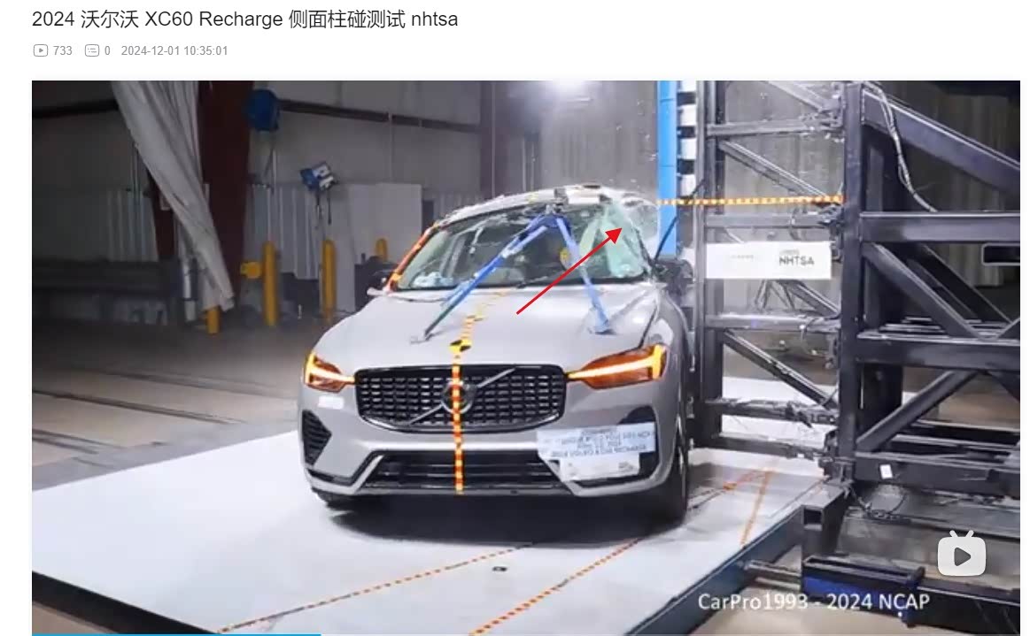 柱碰看车顶横梁变形程度、玻璃碎裂程度、侧面受挤压程度,总归是越小越好。没啥可说的,图片和视频直观明了,表现最好的是星途瑶光,其次奔驰GLE,宝马X5、奔驰GLC、沃尔沃XC60,其中沃尔沃XC60的柱碰表现和前2名的差距有点大了