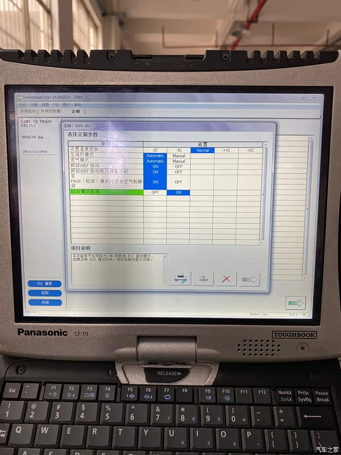 1月份购入18款普拉多,最直观的感觉就是这车太肉了,红绿灯起步各种被虐,因为磨合期也没深踩,不超过四千转吧!后来观察发现每次给油只要不超过三千转,动力输出较小缓慢提速中,而且升档快降档慢油门有延迟,或者深踩油门到三千往上,此时动力才开始爆发出来,但是顿挫感较强没有自然吸气发动机该有的加速线性,这一切都是ECO在捣鬼,每次这种情况出现它都亮着。于是打电话给本地的几家4S店,都说这个无法关闭,在网上看了几个关闭的帖子后准备自己去4S店试试看,刚好昨天去预定原厂彩条。