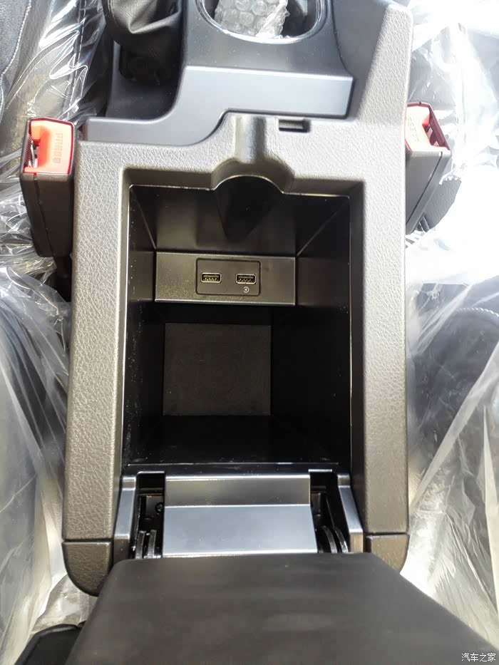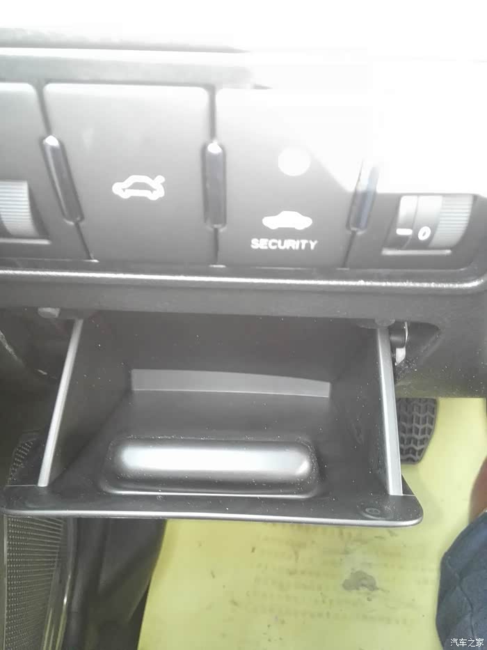 扶手箱很深,而且是两层的,开关都是做过处理的,能放点东西,而且很人性化的留出一个小豁口,是预备数据线走线用的