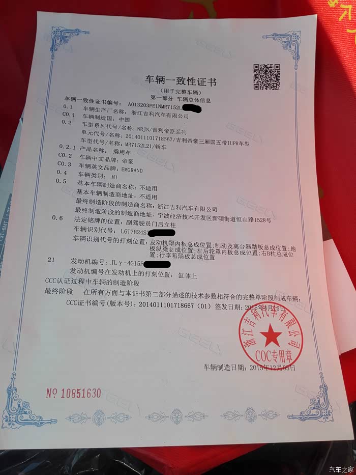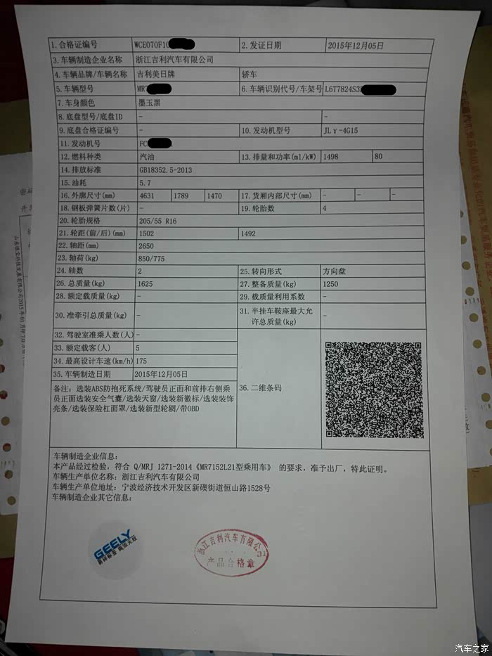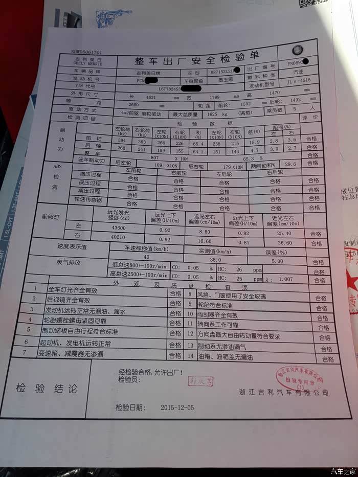 当天去取消了欧尚的订单,就直接骑着电动车去了帝豪,其实最初我就关注过帝豪,但是因为价格有点超出预算,所以后来放弃了,但是现在欧尚不靠谱了,只好在转回帝豪,而且有了年终奖做支撑,朋友临时支援,还是可以下手的,所以直接找4S谈价格,谈好了之后直接交定金。本来可以当时就提车,因为工作关系,只能延误几天,不过没关系,只要年前搞定就可以。所以又等了几天,等工作都结束了,赶紧和同事奔赴4S店提车,结果办不了临牌,买了车没临牌一样不能上路啊,没办法当天就去挂牌,结果排队的太多,那就偷摸开回家去(怕路上有查车的JC蜀黍),第二天7点就去排队,拿了个23号,然后就坐等挂牌,幸好还是比较顺利的。在年前顺利挂上了拍照,过年回家正好!