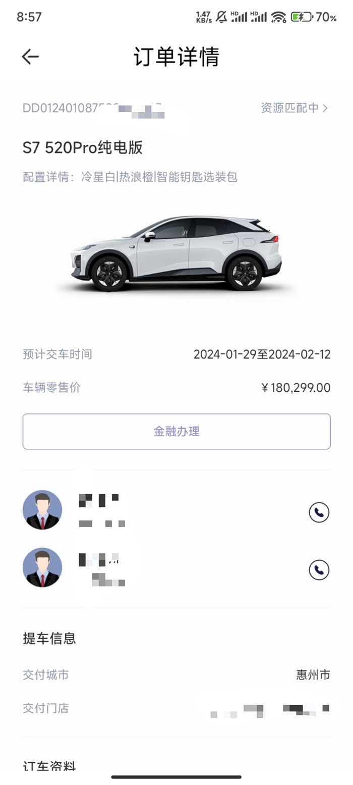 请教一下各位车友,深蓝S7纯电520pro,大概多久交车?没有选装包,昨天下订的,不知道能否在过年前提车