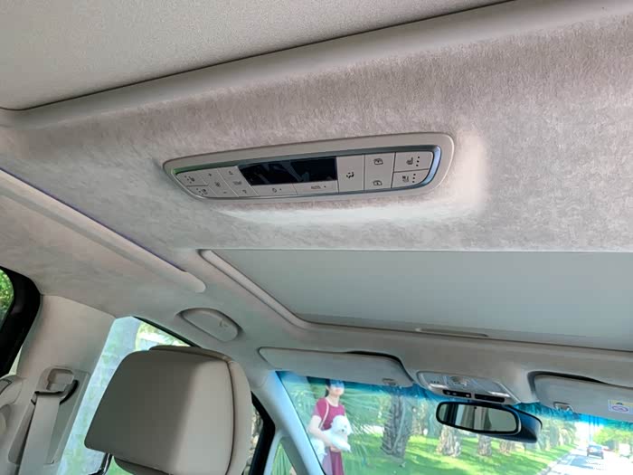后排控制键。 这个车顶装饰采用翻皮,豪华度满上提升。点赞!
