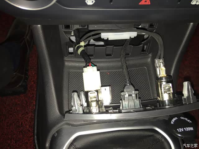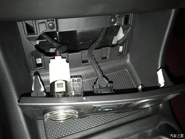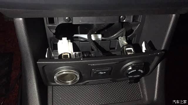 原车的面板上边,有预留了一个点烟器口,刚开始打算从中间把它钻个洞,结果发现是一个盖子,打开盖子就可以了。