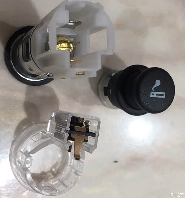 又来车上把装好的面板又扒拉出来,对比了原车和网购的点烟器,可以说是一模一样,只差了一个小灯而已。。