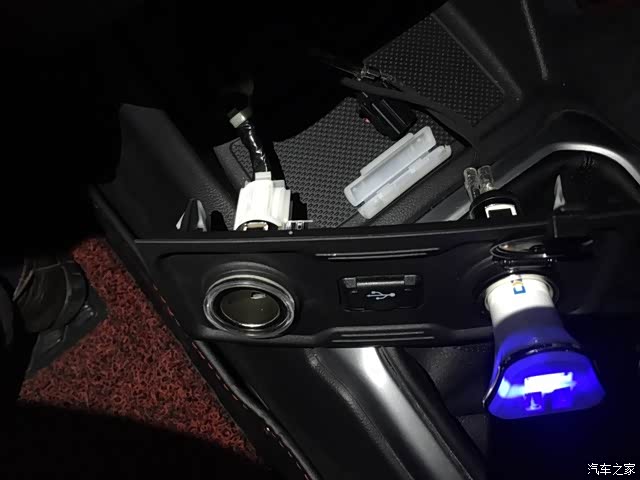 发亮的点烟器是白光的,在晚上的时候可以看得清楚些,终于可以不用乱插了。