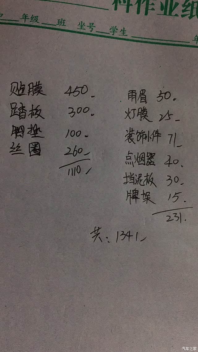 稍微计算了一下这辆车的改装费用,差不多花了一千多块。