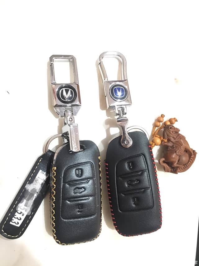 两个智能钥匙的钥匙套,是不同厂家的,所以是两个颜色,个人感觉红线比较漂亮,还有钥匙套上面有一个车主手机号码牌,手机尾号跟我的车牌数字是一样的。