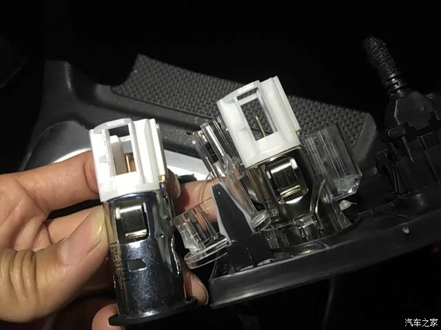 卸下两个接口,研究了一下原车的点烟器,有带发光圈,但是没有小灯泡,这…………给减配了。