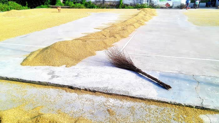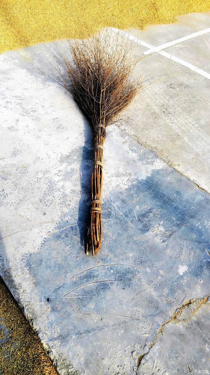 把谷子聚拢成堆之后用大竹扫把漏网之谷扫干净、粒粒皆辛苦啊
