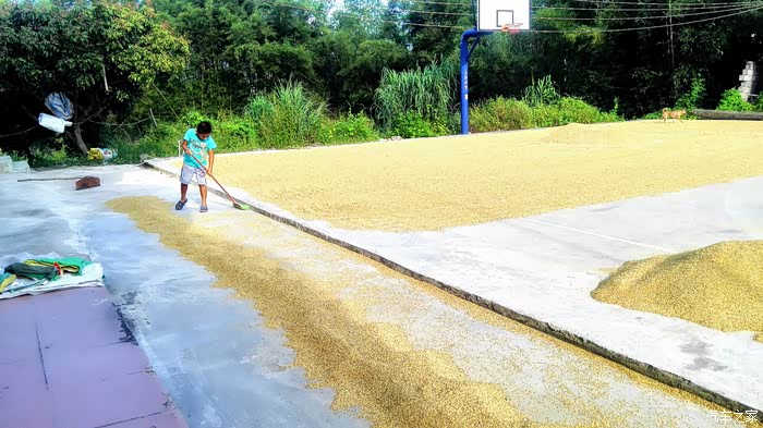 晒谷算是农忙时最轻松的活了,主要就是看场,防止鸡、鸭、猪、牛等畜牲来糟蹋,每间隔一个小时左右也要去翻翻弄弄谷子,让谷子充分得到阳光的照耀干得快一点,其余剩下的大多数时间都是跟小伙伴们坐在阴凉的地方玩耍,所以晒谷的乐趣因为能跟小伙伴们一起玩而让人难忘,我们农村娃的童年感受颇深便在于此。上图让大家感受一下我们农村人是怎么晒谷的!- - - - -- - - - - -- - -