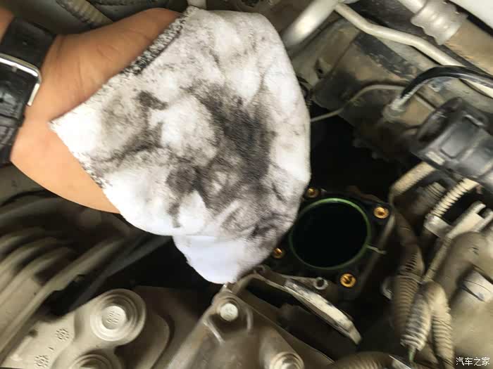 歧管顺便擦擦就行了,别太较真,主要还是洗洗节气门,清洗剂直接喷,喷一喷然后用卫生纸擦,隔板可以活动,用手指顶开,别用铁的工具和赢得东西顶,有涂层破坏了就不好了,耐心点,好不容易拆下来一会,彻底洗干净它