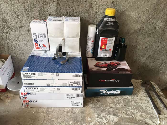 屯的货,汽油滤芯、空气滤芯、空调滤芯、机油滤芯、刹车及离合器油(共用)前后刹车片、节气门清洗剂,加上车上已经换上的,这次活动买的一共约1000元左右的货,买的有点多,三四年是够了,回头淘两桶机油、一组火花塞·····