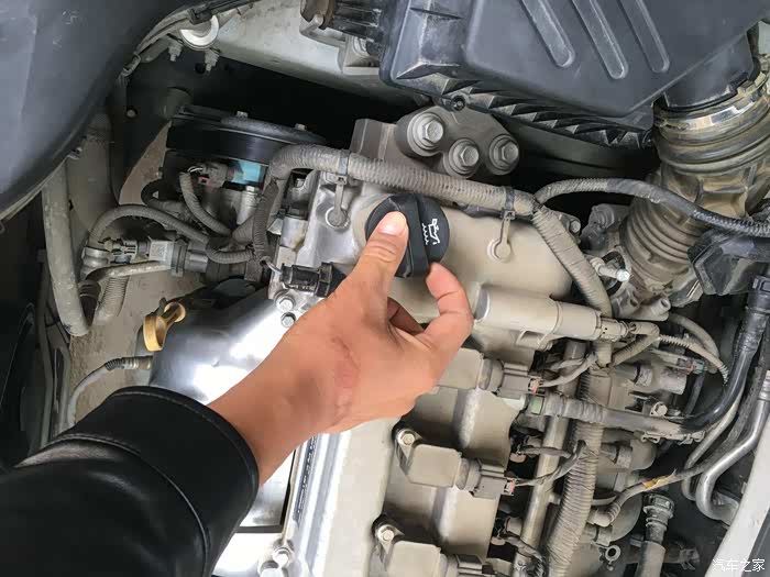 卸下机油盖,一只手拿着就行,马上就要盖上