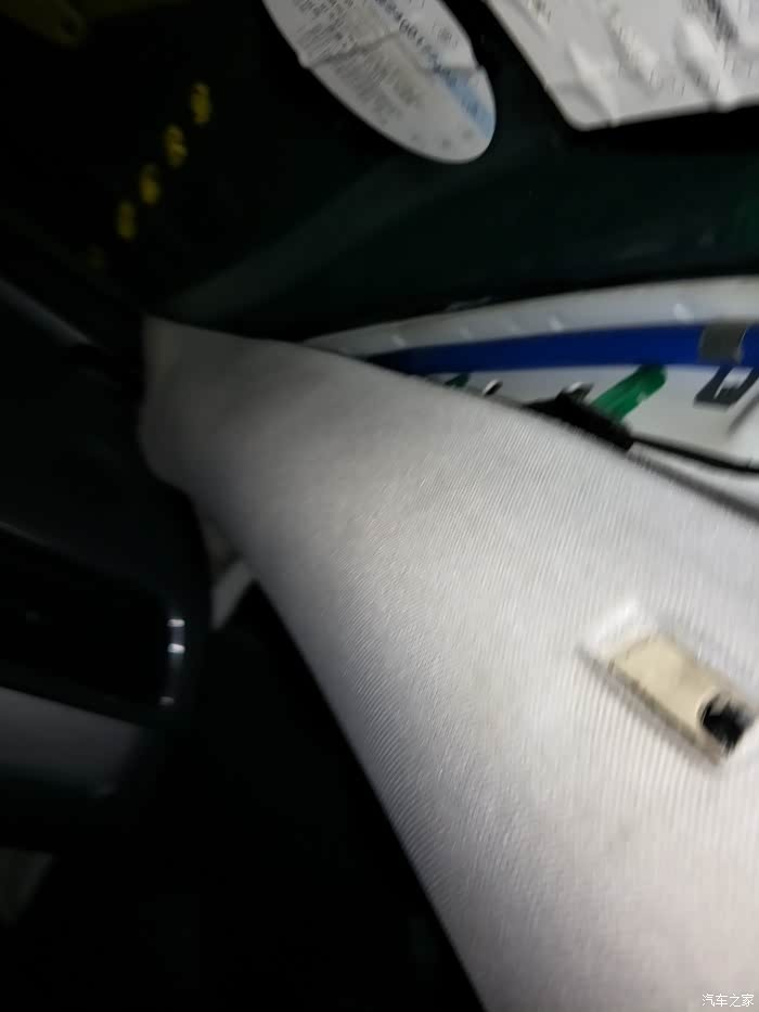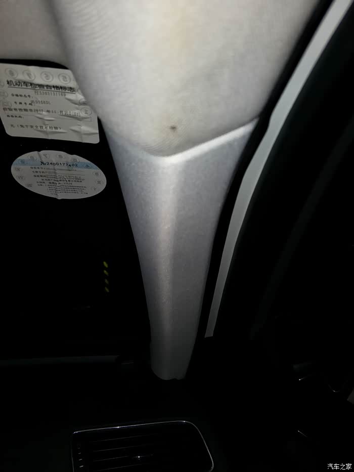 副驾A柱内饰板掉下来了,用螺丝钉上上去。