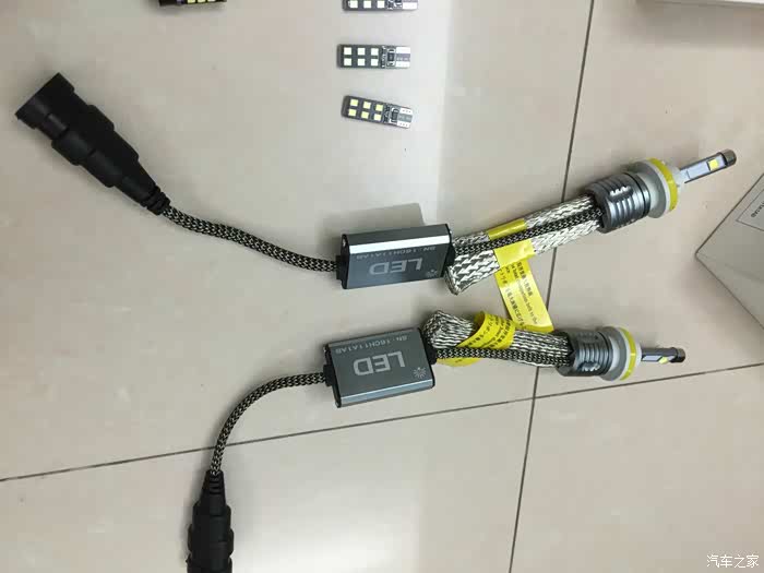 拆开包装后,两个灯,分别是LED远光和近光,一开始我以为都是一样的,仔细看看才知道,接口不一样。