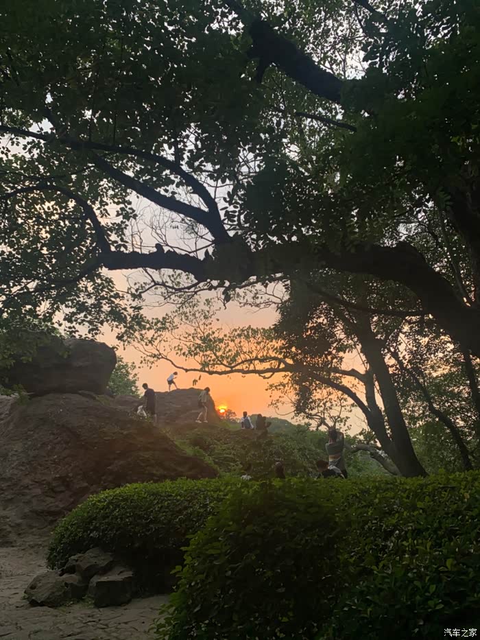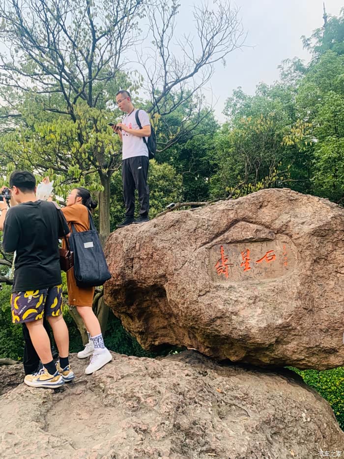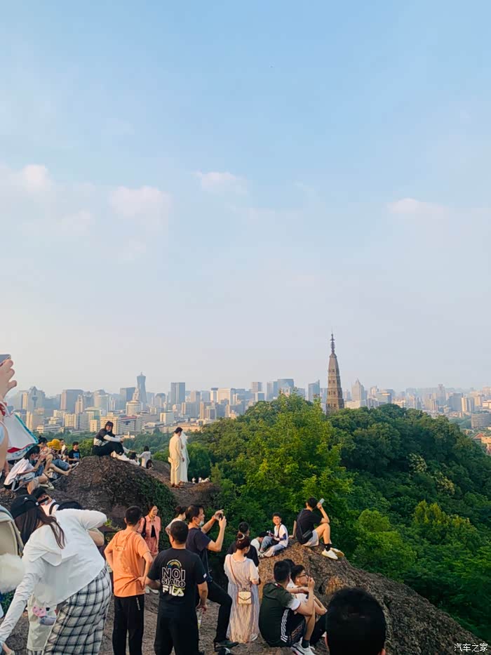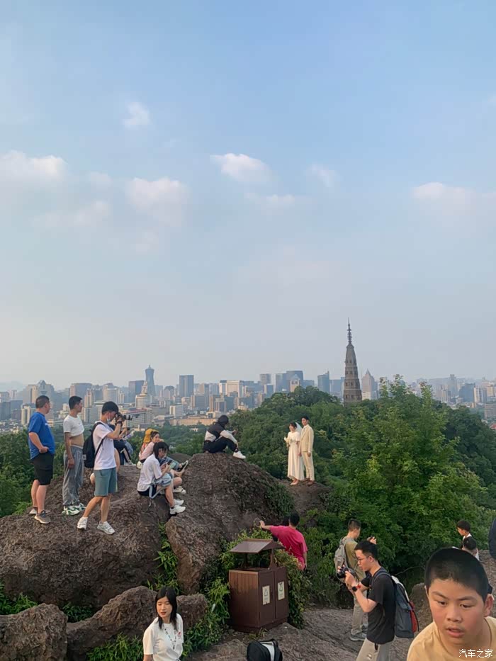 在去往保俶塔的路上。路遇一岔路,中间小道平缓些,通往保俶塔,右侧略陡,在一自然形成的山洞中钻出去,这里就是蛤蟆峰,刚开始上去看着周边好似平平无奇,看到旁边的游客都聚往右侧小道上去,我们也跟了上去,哇!宝石山的美景果然名不虚传,因为时间的关系没有等到日落,听说好多人早起来这里看日出,勇气可嘉,上面还有一个地方可以直接爬到石头上看到这个西湖的景色,非常棒。但是这个地方上去挺难,需要小心。如果看日出,要早点起床哈。这边拍照的人特别多,和七层保俶塔正好遥相呼应,旁边也有拍婚纱照的,佩服他们的勇气,这拍出来的婚纱照也很有纪念意义,拍照要注意安全哦。