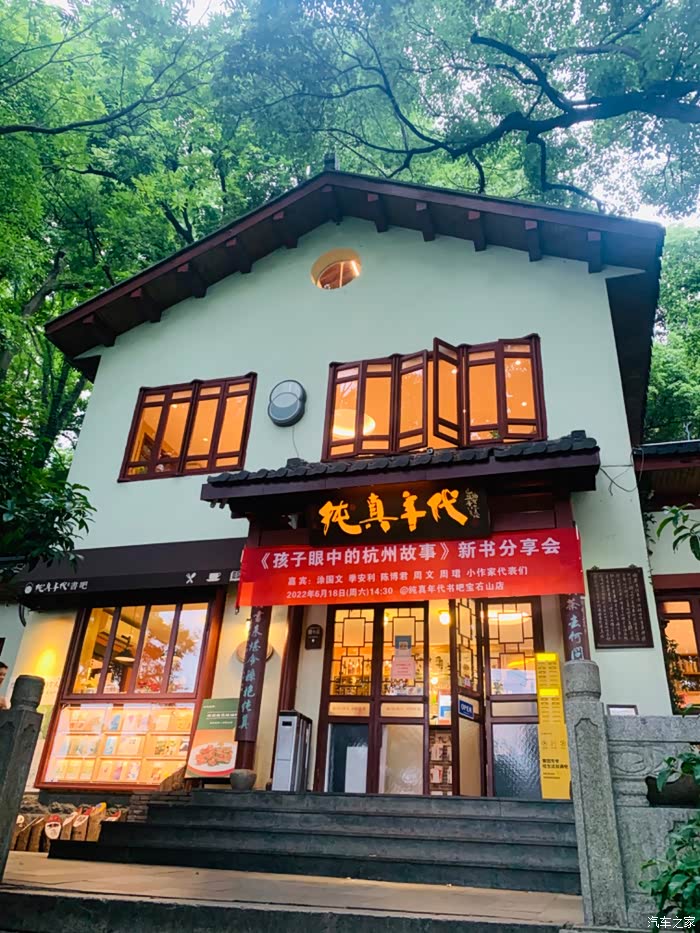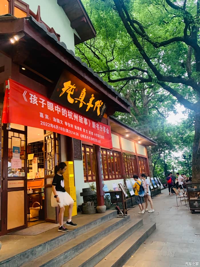 我们去的时候保俶塔人不是太多,还有休息的地方,从保俶塔下去是一家很有特色的饭馆,正好在办新书发布会,这里就不细细研究了,往下走去朝左边拐,这里直通西湖,体力够的话顺便也可以游一游西湖