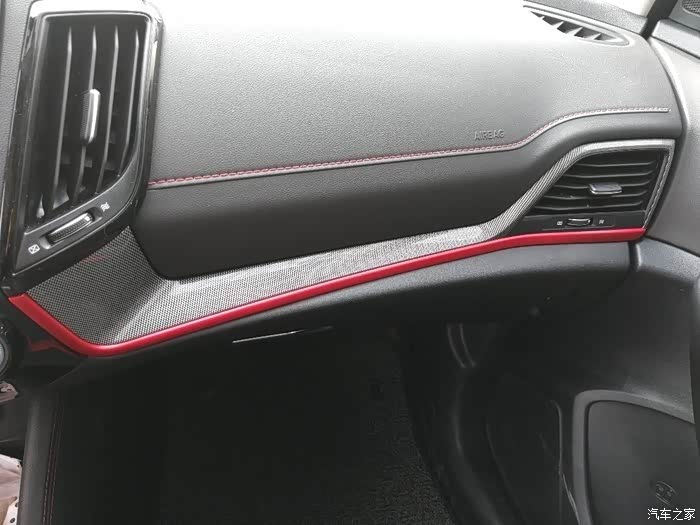 内饰采用软塑精细打造,用红色线条装饰,看上去时尚动感