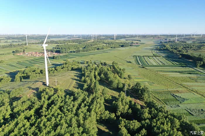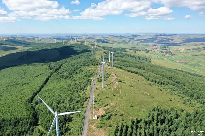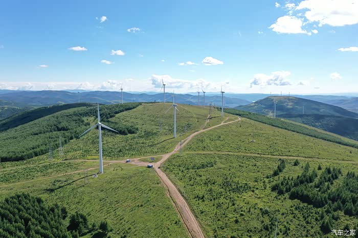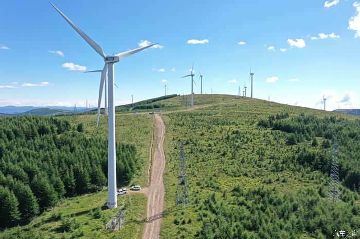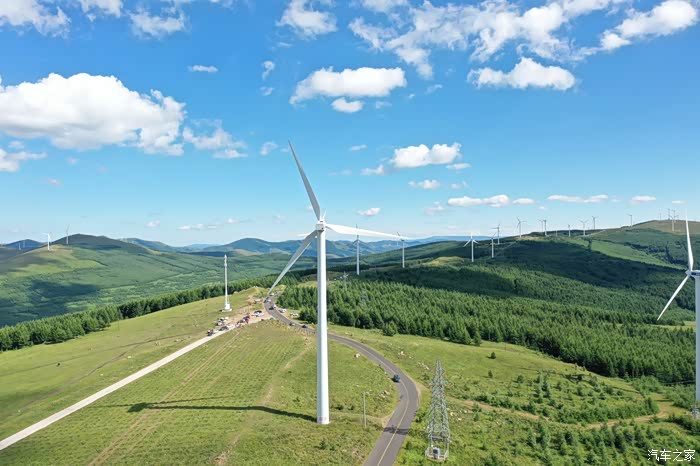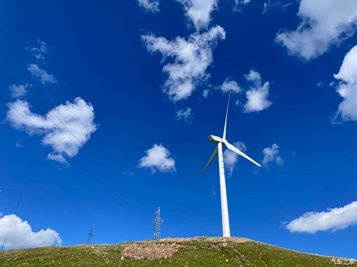 满眼苍翠,风车和白云