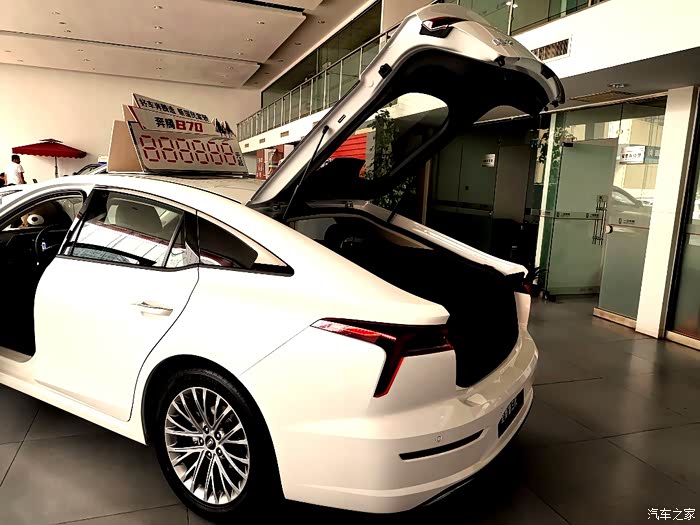 正好周末,然后还下着雨,本想着去溜街,朋友打电话说想买车一起陪他去看车,现在他去看看我买和我一样的T77,到店以后就发现更喜欢B70?四轮独立悬架,因为我觉得'T77