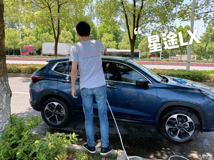朋友这个洗车机水压挺大,冲一边基本就把尘土刷掉了,然后打上泡沫,溶解一下泥沙,用洗车手套擦洗一边,再冲洗一边,绕车检查,看看哪里没洗干净。