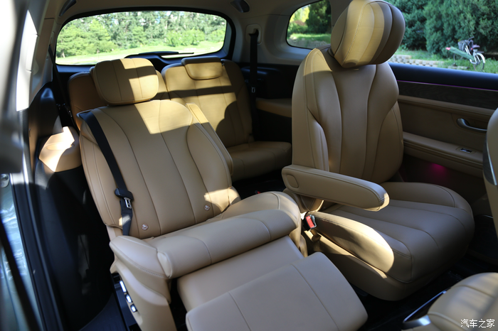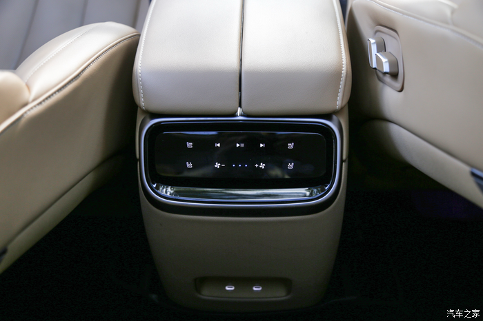 第二排座椅除了调节之处,同样也配备了加热、通风等,并带有独立的面板设置,后排乘客可在这里对风量、多媒体等进行操控。