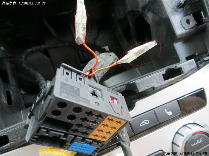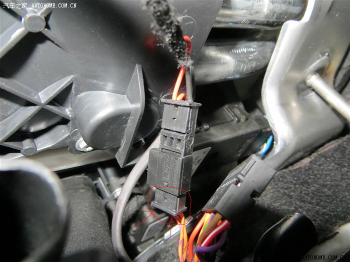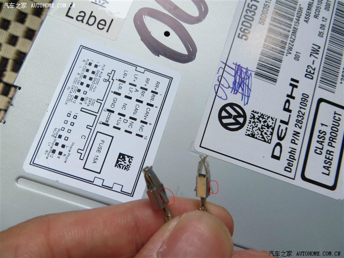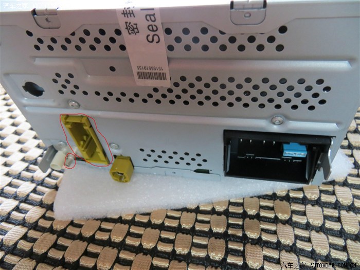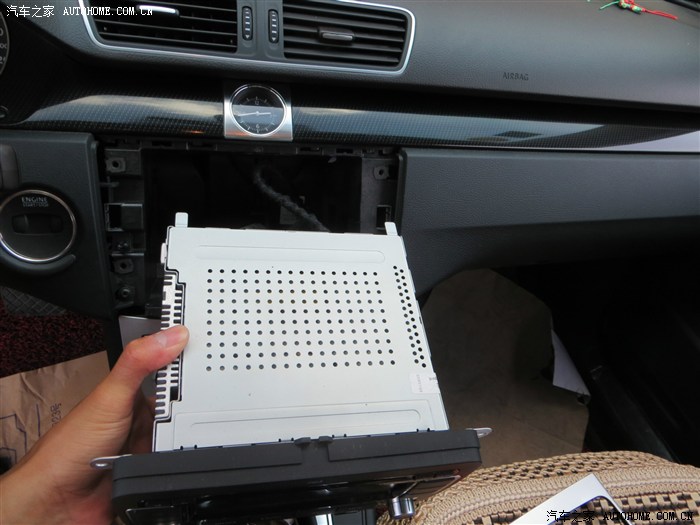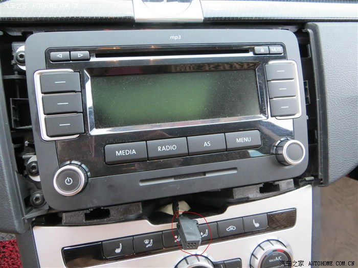 回到上面去,把RCD510回去,把后面的线插好,很好插的,注意白色卡子的收音机线要插到位!很简单的,找准中间位置,固定螺丝