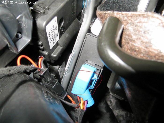 插好OPS线,上面这块技术活算完事。把OPS线的另一头从里面往方向盘底下部分送,那边有网关,就是把另一侧插到网关上,才能实现虚拟倒车