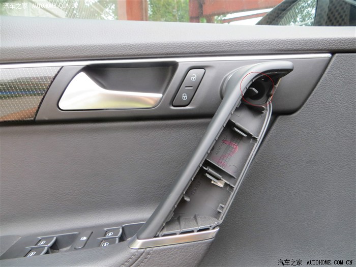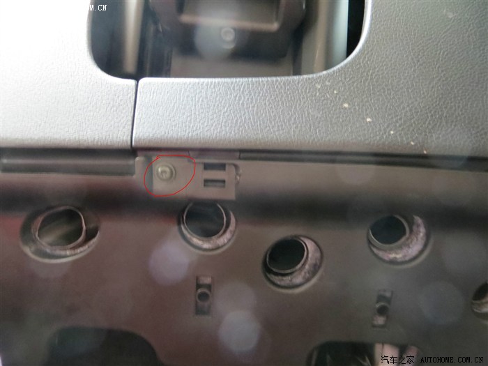 扶手上面,红圈里的是一个螺丝,用T30。整个门板3个螺丝