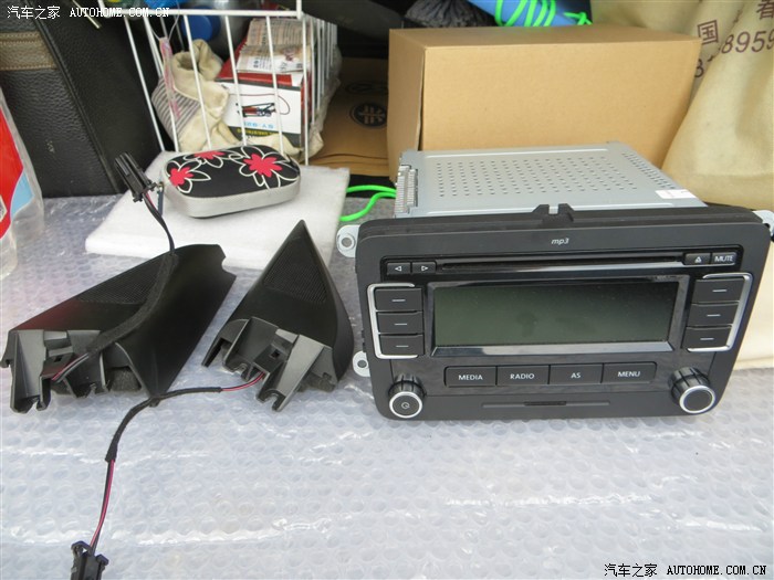 替换下来的两个A柱喇叭,和原车的RCD510,还是很舍不得的,拆的时候很小心,一个印都没有。大功告成很是激动啊!各位给鼓鼓掌吧, 一个人完成的,累废了,丹拿喇叭和RCD510共同作用下,音质确实提升不少!不嫌费劲的朋友可以试试