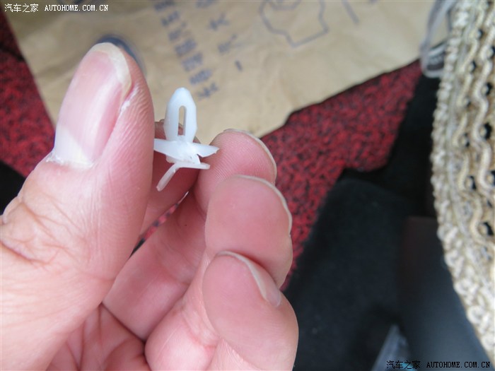 这是原车喇叭上的3个小卡扣之一,拽喇叭时候它卡在车身上,没跟着喇叭一起下来,用钳子拽,别用指甲拽,我手指甲因为它弄出血了,而且还费了大约20分钟,后来回家取得钳子,几秒钟一下就拽下来了